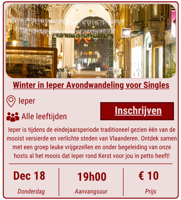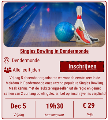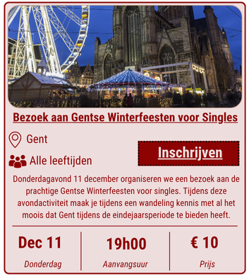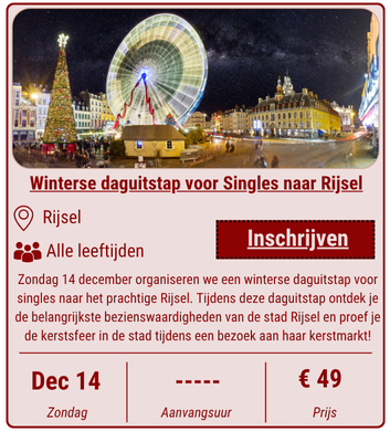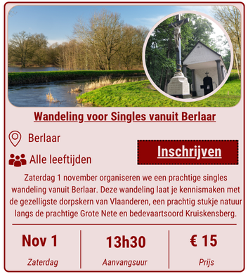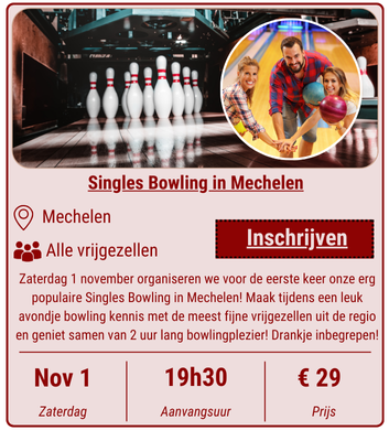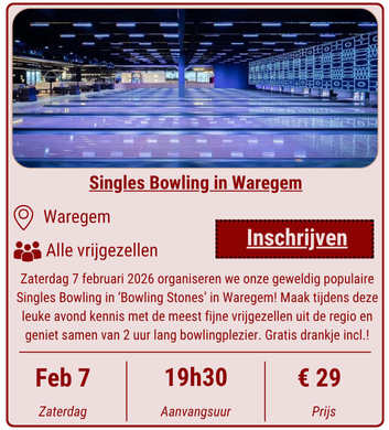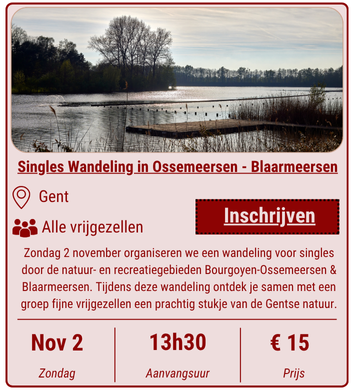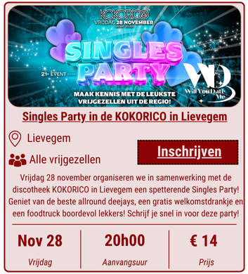 Will You Date Me is een organisatie die zich focust op het organiseren van activiteiten voor singles. Bij het organiseren van onze activiteiten trachten we ook altijd net iets meer te doen. Zo bieden we op onze wandelingen altijd een gratis drankje aan, bezoeken we tal van bijzondere locaties en organiseren we de leukste daguitstappen waarbij werkelijk alles voor je wordt geregeld. Bijna maandelijks organiseren we ook tal van algemene evenementen zoals feesten, afterworks of andere evenementen waar we heel veel vrijgezellen samen weten te brengen. De activiteiten voor singles die we organiseren zijn er bovendien voor vrijgezellen van alle leeftijden. Wil je dus met andere woorden graag nieuwe vrienden maken of hoop je de liefde van je leven te vinden? Dan is het in allebei deze gevallen zeker de moeite waard om ons aanbod met singles activiteiten in het oog te houden!